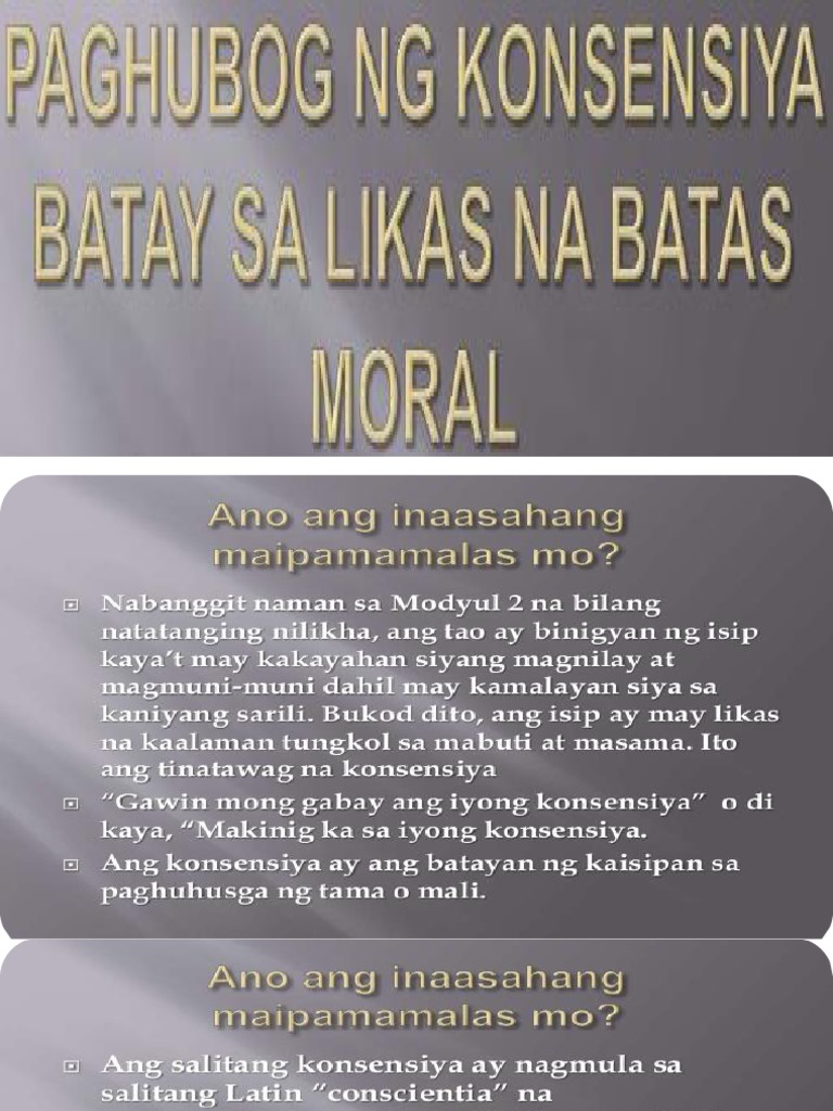 Modyul 3 Paghubog Ng Konsensya Batay Sa Likas Na Batas Mora Pdf