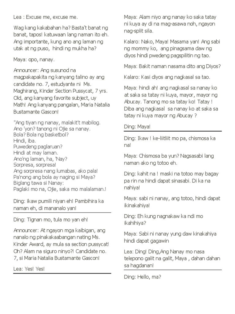 Bata Bata Paano Ka Ginawa Summary Script Pdf